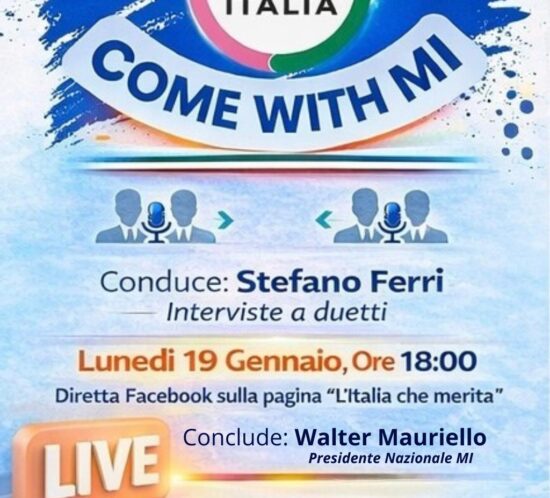 LUNEDÌ 19 GENNAIO ALLE ORE 18.00 DIRETTA SOCIAL DI MERITOCRAZIA ITALIA SULLA CAMPAGNA NAZIONALE ADESIONI