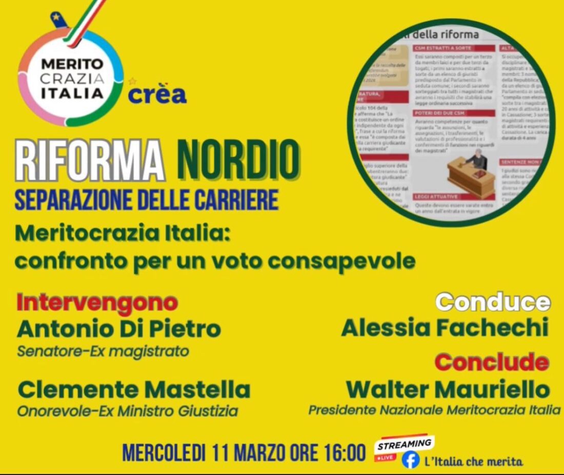 Meritocrazia Italia ha già mostrato adesione per le ragioni del SI. Lo ha fatto fin da molto prima della riforma Nordio e non ha mai inteso riferire il proprio orientamento a una scelta di carattere partitico, illustrando da subito le ragioni tecniche a supporto della propria decisione.